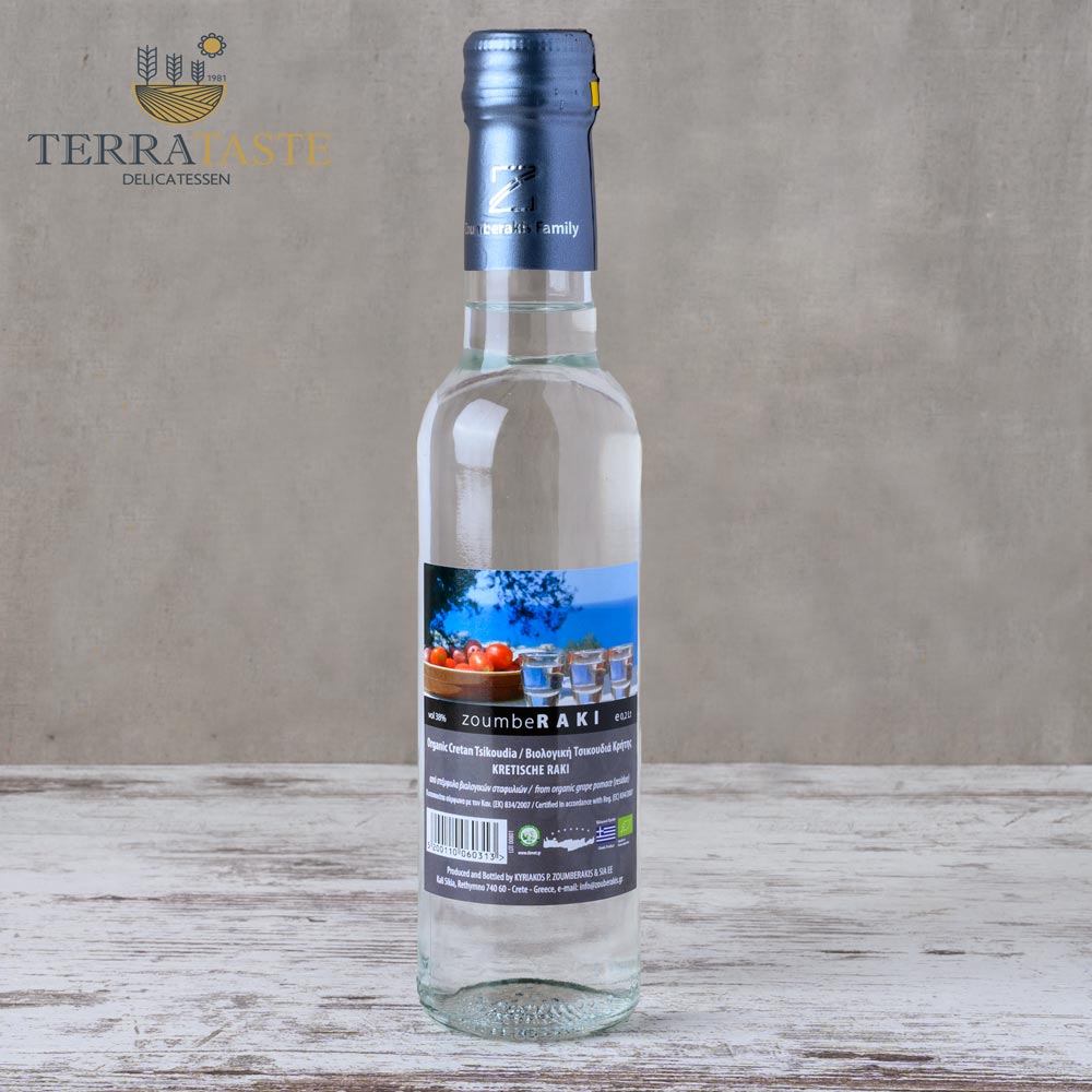 Η τσικουδιά είναι παραδοσιακό Κρητικό ποτό. Διάφανο οινοπνευματώδες απόσταγμα από στέμφυλα σταφυλιών βιολογικής γεωργίας. Είναι προϊόν απόσταξης από 100% φυσικά προϊόντα, χωρίς πρόσθετα. Ακόμη και το όνομά της έχει τοπική παραδοσιακή προέλευση, αφού τα στέμφυλα στην Κρήτη λέγονται και τσίκουδα. θεωρείται εξαίρετο χωνευτικό και έχει ακόμη αντιμικροβιακές ιδιότητες, γι’ αυτό και αποτελεί τη βάση για πολλά “γιατροσόφια”. Η Βιολογική Τσικουδιά Κρήτης ξεχωρίζει για το διαυγές χρώμα της, αλλά και για τα μοναδικά, μεθυστικά αρώματά της, που κατακλύζουν τις αισθήσεις, μόλις το μπουκάλι ανοίξει. Παράγεται με αυστηρή επιλογή σταφυλιών βιολογικής καλλιέργειας, άριστης ποιότητας, και δεν περιέχει γενετικά τροποποιημένους οργανισμούς